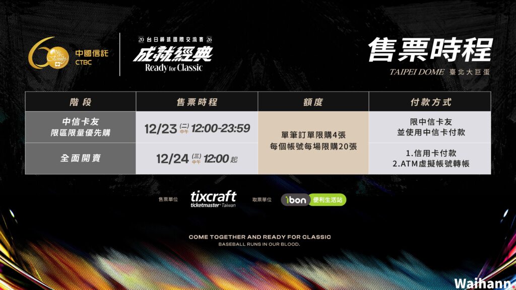 目前第一波與全面開賣均已啟動,尚未購票的球迷請鎖定 拓元售票系統 進行最後刷票。
